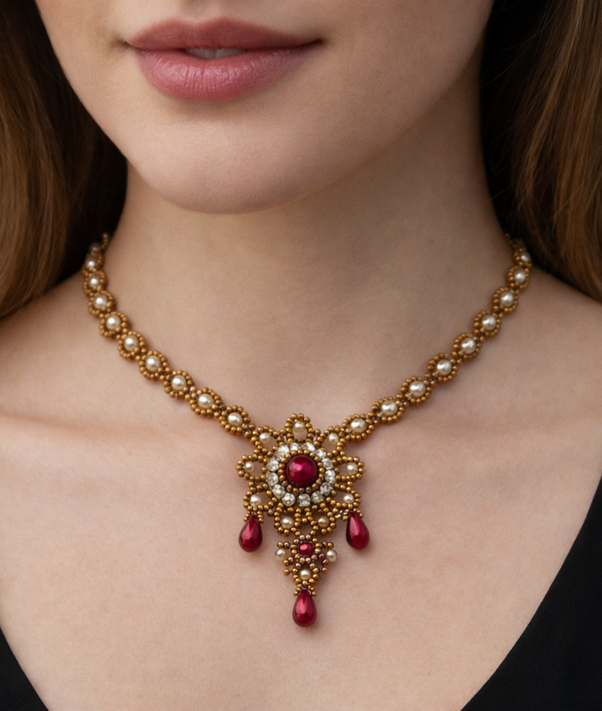 Il y avait longtemps que je souhaitais me faire un pendentif de ce style. C’est chose faite ! Son schéma fera l’objet d’un challenge d’été sur notre site Perles Dent’Elles réservé uniquement à nos adhérentes. Pour celles qui souhaiteraient le réaliser, il sera en vente sur mon site Etsy. J’espère qu’il se pendra bientôt à votre cour si vous l’aimez autant que moi.